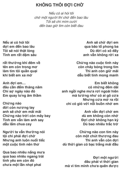KHÔNG THÔI ĐỢI CHỜ – TRUE LOVE, ENDLESS WAIT
