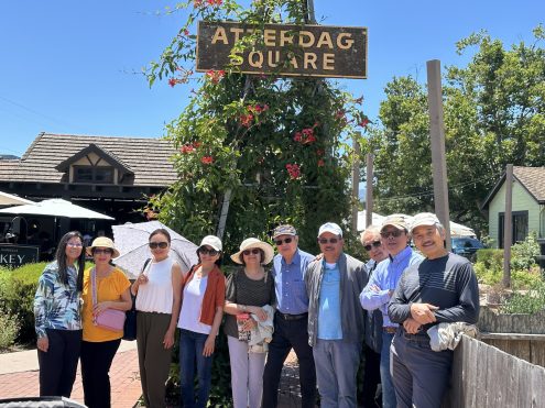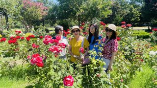 Once the sun climbed high and the lotus garden closed, we sat down again to enjoy our teacher’s farm-fresh meal. Afterwards, we toured notable Sacramento-area sites—especially the McKinley Park rose garden. Like our lotus pond, the rose garden offered quiet beauty among vibrant blooms and shaded walkways. Everyone posed in every corner, creating keepsakes of this precious time together. We then returned to Loomis, dining and chatting until bedtime in anticipation of the next day’s drive south.