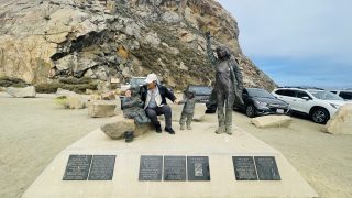 Chúng tôi đến Morro Rock sau trưa, dù vậy anh nắng không gay gắt như vùng Cao Bồi Texas của tôi. Ánh nắng rải ánh vàng dịu nhẹ lên mặt biển. Tượng trưng cho Morro Rock là khối đá núi khổng lồ sừng sững giữa vịnh Morro Bay. Đứng trước nó, tôi cảm nhận được sự tĩnh lặng thiêng liêng, như thể mọi âm thanh xung quanh đều bị nén lại để dành chỗ cho sự uy nghi của thiên nhiên. Những cánh chim hải âu bay lượn quanh vòm đá, tiếng sóng vỗ rì rào dưới chân, và không khí mằn mặn của biển khiến cho khung cảnh trở nên thật sống động. Chúng tôi đi bộ dọc theo bờ biển, chụp hình, ngắm vịnh Morro Rock từ nhiều góc độ, mỗi góc lại như một bức tranh khác nhau; lúc thì như một chiến binh cổ xưa canh giữ cửa biển, lúc lại như một người khổng lồ đang trầm tư nhìn về phía khơi xa.