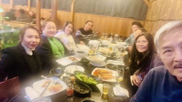 Khi đến nơi, chúng tôi đã thấy có chị Hiếu, Dzáng Thơ và anh Dũng ở đó rồi. Mai Hương nói có mời chàng đa sĩ Lê Phú nhưng vì chàng có Project due đã nên cáo lỗi. Khung cảnh nhà hàng không khác gì mấy, chỉ là phần trang trí có vẻ xinh đẹp hơn một chút. Anh Dũng đã nghỉ hưu tuy trông còn “trai tráng delicious rice” lắm. Khi món ăn được liên tiếp dọn ra, tôi thầm nghĩ, “Chắc hai đại gia nầy có quá nhiều tiền sợ xài không kịp sao đây.” Vâng, nhiều đến nỗi Mai Hương và mọi người bắt chúng tôi mang “take away” về; hay là họ sợ chúng tôi đói vì không có phương tiện di chuyển? Cái mửng nầy lặp lại từ bữa trưa Dzáng Thơ mời hôm nọ rồi.