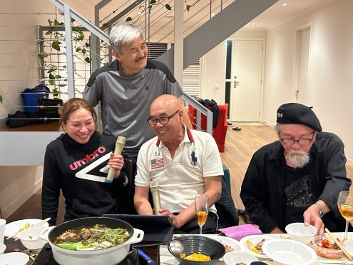 Cứ thế ăn uống, vui đùa, ca hát rất nhiệt tình, quên cả thời gian, đến khi nhìn lại đồng hồ thì thấy đã khá muộn. Ôi một bàn ăn cá thịt ê hề giờ chỉ còn lại mớ chén đĩa ngổn ngang. Thế là cùng nhau thu dọn. Cùng nhau ngập ngừng diễn lại tiểu phẩm chia tay rất cũ. Khi cửa xe, cửa nhà đã khép, lòng tôi có chút bâng khuâng nghĩ đến tình người thân, nghĩa bạn bè. Hai tuần ở Melbourne, gia đình Chiến – Trường An đã chăm lo cho chúng tôi hết mực, từ tiệc welcome ngày đầu, đến những bữa ăn chơi dọc phố, từ chuyến đi Great Ocean Road gió lộng đến buổi tiệc chia tay hôm nay với tràn đầy yêu thương. Tất cả không chỉ là kỷ niệm vui, mà còn vướng đọng cả tấm lòng – tấm lòng rộng mở, hồn hậu, giản dị mà chân thành.
